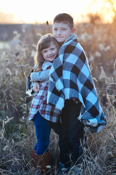 My photography style is simple, I just want to show off my subjects. In this case my own children! I found this great little spot where the sun sets right behind it and just wanted to capture some sun reflecting on them or outlining them. The blanket scarf around them is one of my favs this season to wear and to see them wrapped in it, means they are wrapped in mommy's love. That Saturday evening was way colder than we thought and both of them were such great sports and had fun anyway, even though we were freezing.